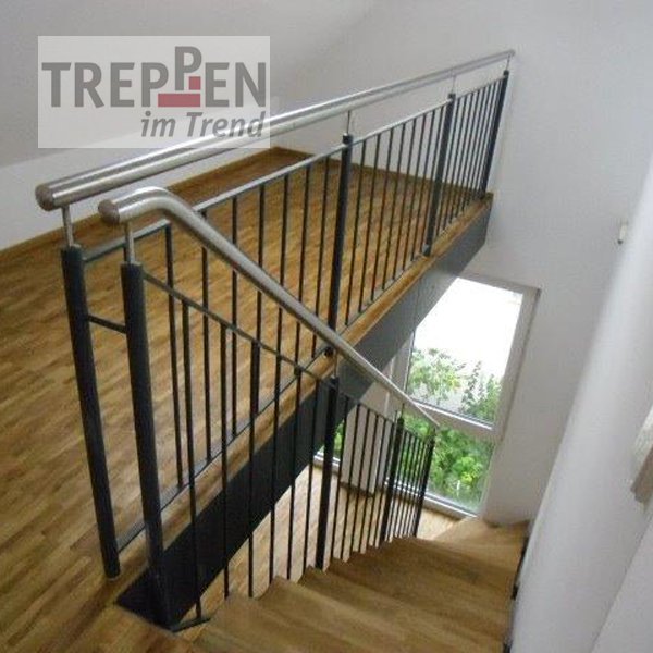 Geradläufige Zweiholm-Treppe mit angewendeltem Antritt.